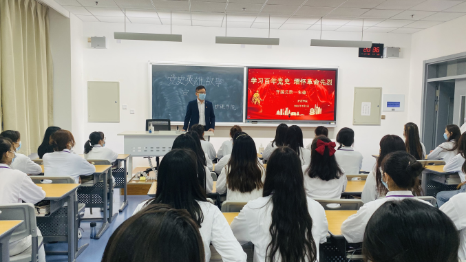 2021年4月1日,学院组织开展“学习百年党史,缅怀革命先烈”英雄故事宣讲进班级活动。伴随着刘洋老师深情并茂的开篇语,宣讲活动正式开始。学院护理学2018-05班殷兰同学为学生们讲述了开国元勋朱德同志的英雄故事,护理学2020-05 王淏镭同学宣讲党史故事“中共一大”,用“红船精神”,感召着bat365同学们不忘初心、牢记使命、永续奋斗。