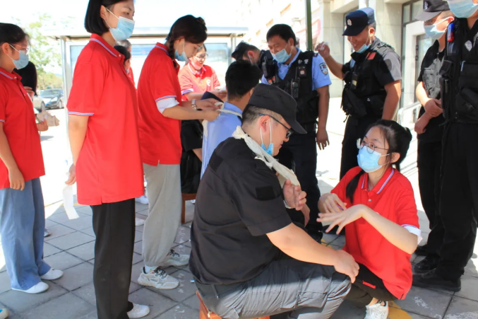实践中,队员们从救护基本知识、救护技能、常见急症及突发事件现场救护等四个方面向基层工作人员进行讲解。结合专业,以日常工作生活中遇到的常见意外伤害及突发事件发生时的判断以及正确、有效的应急措施进行了详尽讲解,帮助大家快速领会急救知识,掌握急救技能,以便在今后工作中能沉着、迅速、科学、正确地开展施救,第一时间抢救他人生命。队员们还情景模拟演示了包扎等现场救护技术,重点讲解了止血及包扎方法,讲解了海姆立克急救法、中暑的处理方法、心绞痛急性发作的应急处置等知识。