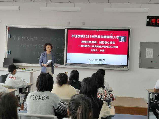 新生入学教育是大学生涯的第一课,帮助新生坚定理想信念、适应大学生活、明确学习目标、科学规划大学生涯。9月12日16:00由院党委书记朱琳为全院21级新生讲党课:“赓续红色血脉,践行初心使命”—如何成为一名合格的护理专业工作者。