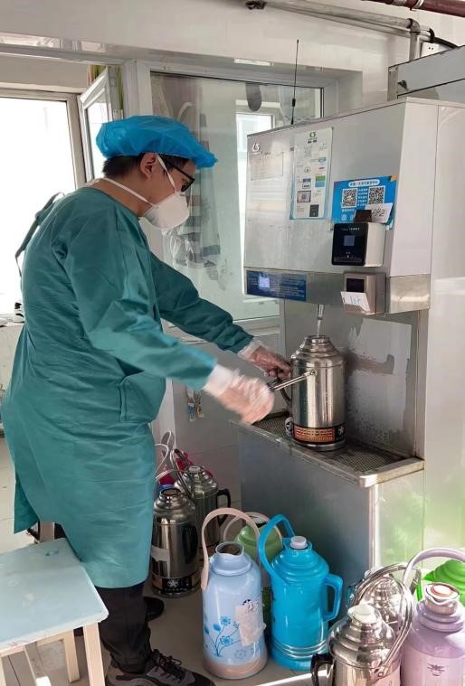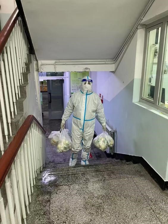 面对疫情,艾合麦提·图尔贡作为学工办的副科长第一时间回到新医路校区,以办公室为家,通宵达旦投入抗疫工作。从8月开始,为了保障新医路校区学生的餐饮及日常生活,艾老师成为送餐员、卸货工、流调员。他每天天不亮就已经出发,奋战在物资搬运、组织送餐、楼层消杀工作的第一线。10月21以来负责新医路校区10号公寓缓冲楼阳转阴、密接和志愿者等学生管理工作,每天的任务都很繁重,接送学生、核酸检测、物资统计、发饭、消杀都都有他的身影。作为一名辅导员,艾老师既要做好楼层防控,更关注学生健康、思想状况和心理动态、困难需求,为同学们解决实际困难。与老校区的实习生们一起抗击疫情、真情陪伴在每个学生身边。