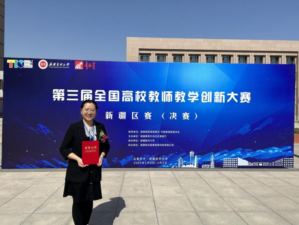 4月5日,在2023年第三届全国高校教师教学创新大赛新疆区赛(决赛)中,bat365正版唯一官网基础护理教研室《基础护理学》课程团队,凭借不断的创新探索,融合课程思政、智慧化技术,充分发挥青年教师信息化优势,以培养“厚知识,强技能,重创新,高素质”的复合型护理人才为目标,形成了“一中心、二元素、三循环、四融合”持续发展的智慧化教学设计。主讲教师赵越老师代表课程团队在全疆高校众多选手中脱颖而出,获得中级及以下组二等奖的好成绩。