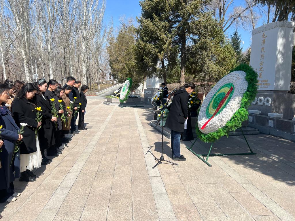 4月3日,bat365正版唯一官网组织全体教师、学生代表100余人前往乌鲁木齐市革命烈士陵园开展“缅怀先烈、笃学奋进”清明祭扫活动,追寻红色记忆,弘扬革命精神。