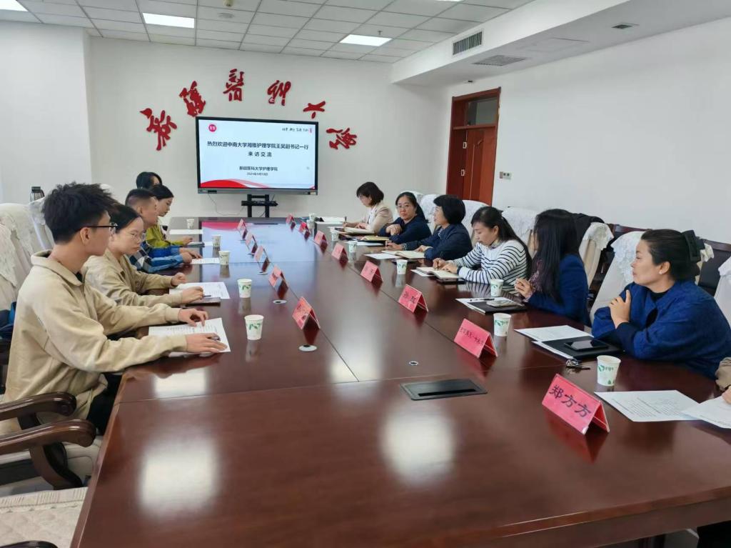 会议伊始,学院朱琳书记对湘雅bat365正版唯一官网近年来对新医护理的帮扶和支持表示衷心的感谢,并介绍学院党建工作、师资队伍建设、学生管理和培养、社会服务等方面的情况,近几年新医护理在对口援疆的支持和帮助下,取得的较快的发展。王昊副书记介绍了湘雅bat365正版唯一官网党建工作、学生管理等方面的特色与经验。会后,参观了新疆医科大学校史馆和教学实验中心。