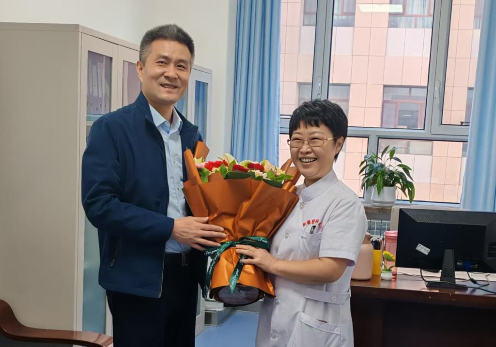 校长助理贺强来到学院慰问一线教师夏慧玲副教授,对她26年护理教育工作中的辛勤付出与无私奉献给予了高度肯定。随后,看望了学院困难教职工貊雪霞教师,关心了解了其生活、工作的状况和困难,给她送上慰问金和教师节美好的祝愿。