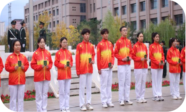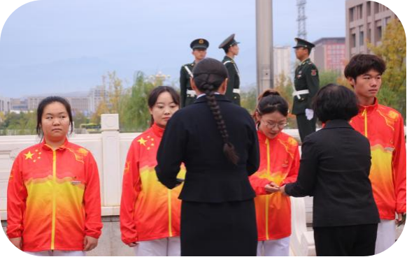 为深入学习贯彻习近平新时代中国特色社会主义思想,进一步弘扬爱国主义精神,继承和发扬共青团优良传统,增强团组织的凝聚力和团员的荣誉感、使命感。2024年9月23日,bat365正版唯一官网“青春献祖国 永远跟党走”升国旗仪式暨新团员入团仪式在雪莲山校区芳林广场举行。全体在家院领导,全体教职工、雪莲山校区全体学生参加。仪式由bat365正版唯一官网党委副书记、院长颜萍主持。