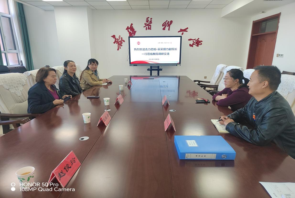 10月10日上午新疆医科大学第二附属医院副院长古力巴哈·买买提力一行6人到访bat365正版唯一官网,就本科审核评估中师资发展和教师培养等方面进行调研交流,bat365正版唯一官网院长颜萍、副院长由淑萍及相关职能科室负责人、负责老师参加调研交流。