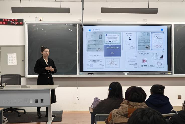 罗园园结合个人学习历程、实践活动及职业规划,为学弟学妹们分享了宝贵经验。她强调,明确目标是学习的关键,鼓励同学们尽早确定学习方向,无论是追求学术卓越还是职业准备,都需有目标指引。她分享了高效学习方法,如时间管理、笔记技巧和课堂参与,以提升学习效率。同时,她提醒同学们珍惜课堂时间,认真听讲,积极参与互动,确保知识掌握。