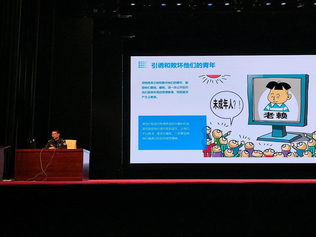 马超警官以“筑牢安全防线,守护青春梦想”为主题,结合自身丰富的实践经验,从国家安全、网络安全、意识形态安全、校园安全、人身安全、防电信诈骗等多个方面,通过真实案例、数据分析等形式,为同学们带来了一场法治教育课。
