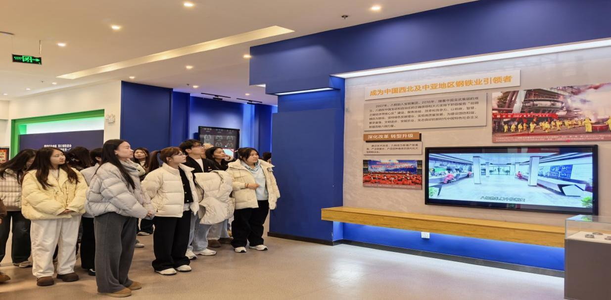 在八钢厂史展览馆,系统回顾了企业73年奋斗史。1951年建厂的八钢,以“建设西北、扎根边疆”为使命,结束了新疆“手无寸铁”的历史,更在改革开放后,通过技术革新实现产能突破实现跨越式发展。随后,师生实地参观冷轧厂时,现代化生产线与智能控制系统展现了钢铁工业的科技革新,让师生切身感受到工业生产的震撼。