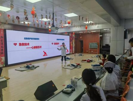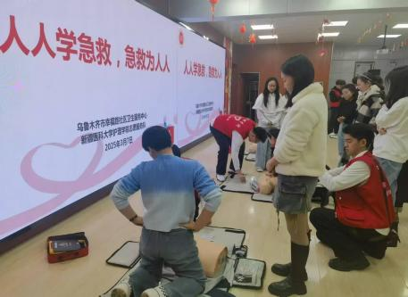 3月6日下午,新疆医科大学志愿者协会、bat365正版唯一官网志愿者协会、南丁格尔bat365正版唯一官网分队、EMT急救社等组成的急救宣讲团携手天山区幸福路社区卫生服务中心前往乌鲁木齐市四十九中学开展急救知识科普宣讲与培训,50余名师生现场参加。