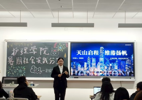 会上,40名学生代表围绕实践背景、核心内容、宣传成效与成果转化展开汇报,并分享了在基层实践中的感悟与成长。通过详实的案例和生动的讲述,带领在场师生“走进”新疆喀什、和田墨玉、河南南阳等地的实践现场,重现了学子们扎根基层、服务乡村的难忘历程。从深入探寻喀什民族特色文化,搭建地域文化交流桥梁;到面向乡村儿童开展历史展馆探寻,点燃青少年爱国主义情怀;再到依托新媒体平台拍摄反暴力心理情景剧,筑牢儿童心理健康防线——各学生代表的活动内容丰富多元,既精准贴合乡村实际需求,又充分发挥学院专业的学科优势,用实际行动展现了新时代青年学子的责任与担当。