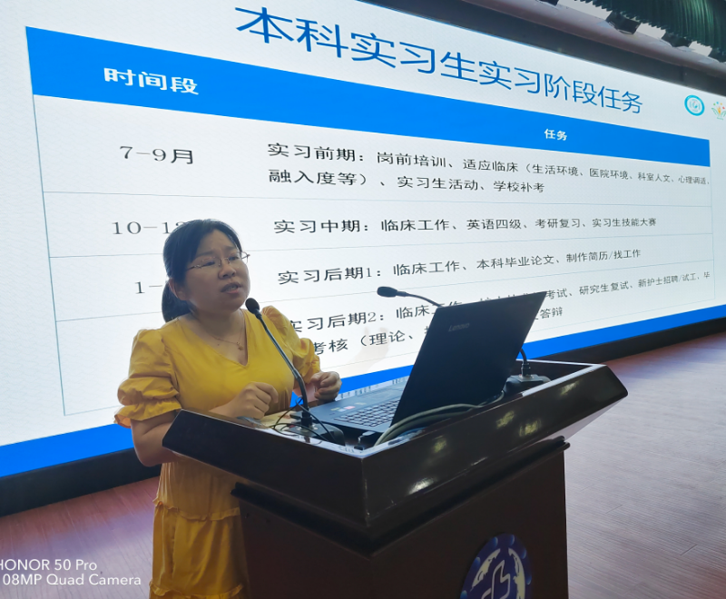 会议最后,苏建萍副院长进行总结发言。她对此次交流会表示充分肯定,同时对各实习基地进行强调,随着护理学科的不断完善和发展,全社会对医疗护理人才的需求在提升,各实践基地需高度重视临床实践教学,以此次培训为契机,学以致用,取长补短,更新临床护理教学的新思路、新理念,将经验管理转变为规范化、科学化管理,不断提升临床实践基地教师的实习生指导能力及水平,为护理专业与学科的高质量发展添砖加瓦!