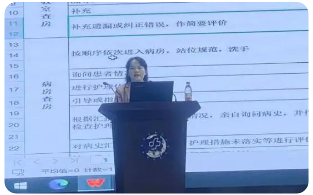 新医大一附院本专科教育管理科汪惠才科长就护理教学查房规范与技巧做培训,对查房流程、站位和人文态度等进行了规范,她说,教师要以“以学生为中心”“以学生能力和提升为根本,培养学生自主学习和终身学习能力”的教育教学理念,切实从实习生存在的个体差异入手,善用多元化的教学手段和教学形式,做到临床理论与实践、笃行不怠、学以致用。