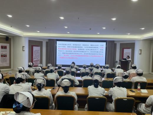 护理部为推进医院临床实习学生及临床教学基地教学团队对护理学专业认证知识的全面学习,深化专业认证知识内涵的理解和内化,结合学校、医院实际,详细介绍了认证背景、护理学办学特点等内容,并结合问卷星进行了知识测试,加深了大家对认证知识的理解。