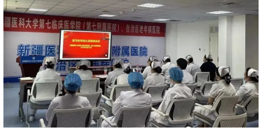 动员会上,护理部主任曹军华传达了新疆医科大学制订的认证推进方案,对临床护理本科生实习管理工作进行了相关安排与部署。同时,她从护理学专业认证基本知识、专家实地考查主要内容、专家组考查时教师需要注意的事项等方面为大家做了详细认真的介绍。她表示,护理学专业认证工作涉及护理教育教学的各个方面,需要全院师生上下合力完成。她希望,全院师生要提高站位,深刻理解护理学专业认证工作的重大意义,将每一项工作任务高标准落实到位,形成人人参与人人关心的迎评氛围,对标卓越,推动护理学专业建设高水平高质量发展。