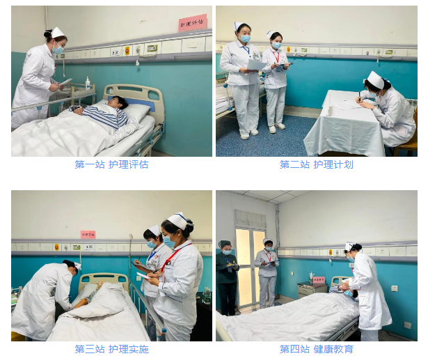 竞赛采用以多站式考核形式,内容覆盖面广、项目多,共设四个站点,分别为护理评估站、护理计划站、护理实施站、健康教育站等,要求参赛选手在规定时间内按照1-4的站点顺序完成操作。